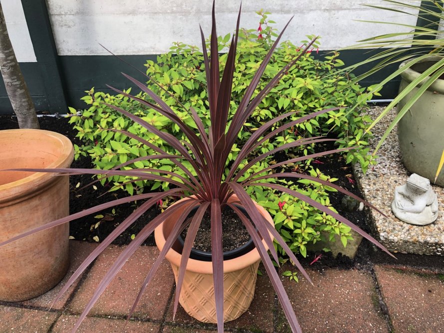 Op de foto lijkt deze Cordyline roodachtig, maar in werkelijkheid